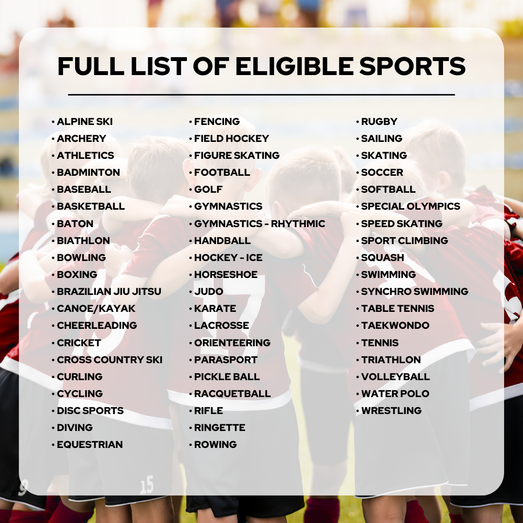 To view our full list of eligible sports, please Click Here.